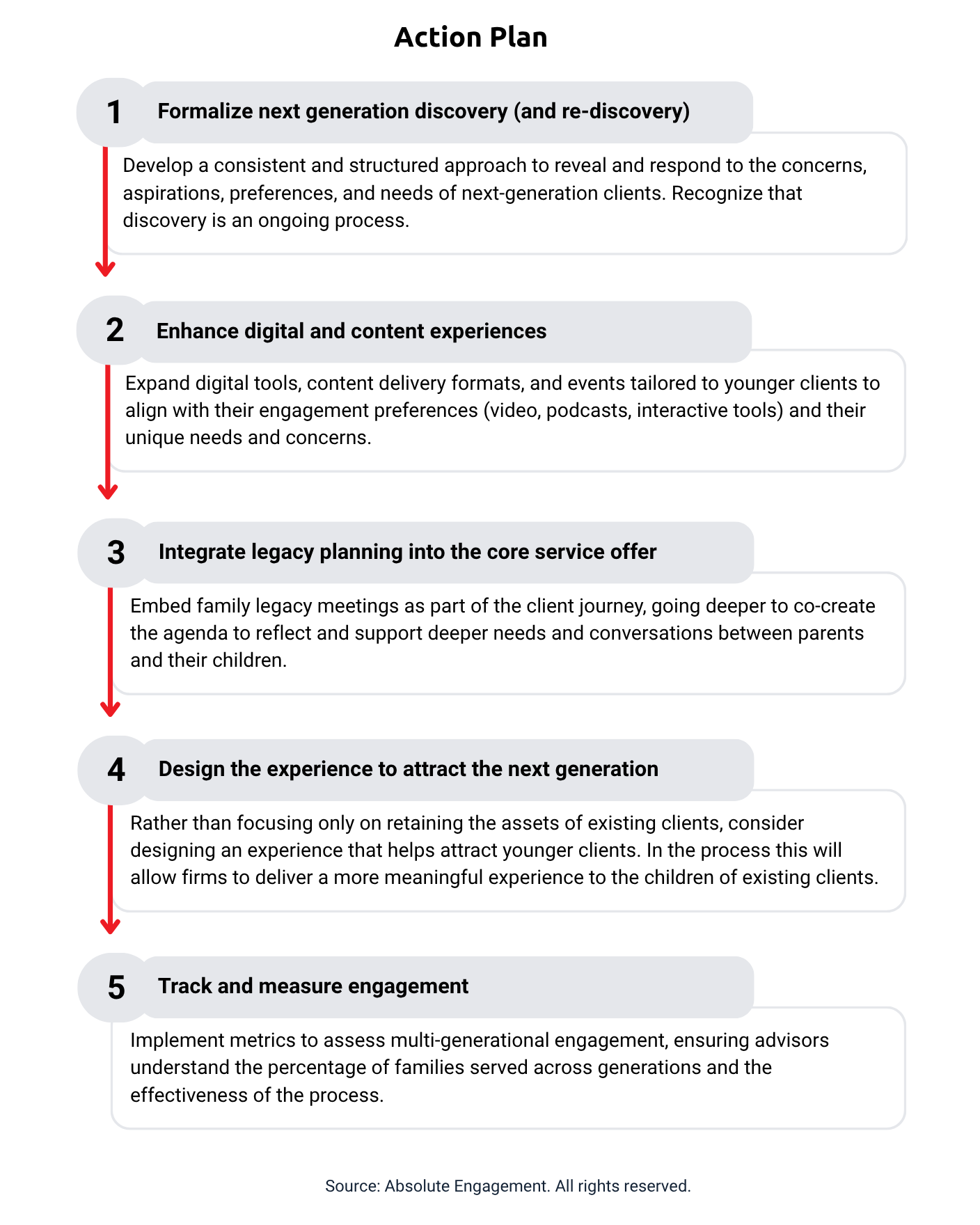- Even forward-looking firms acknowledge they lack the depth of data needed to personalize experiences effectively. Structured, data-driven approaches to capturing next-gen needs, challenges, expectations, and aspirations are critical. Without this “soft data,” even the best intentions can fall flat.
